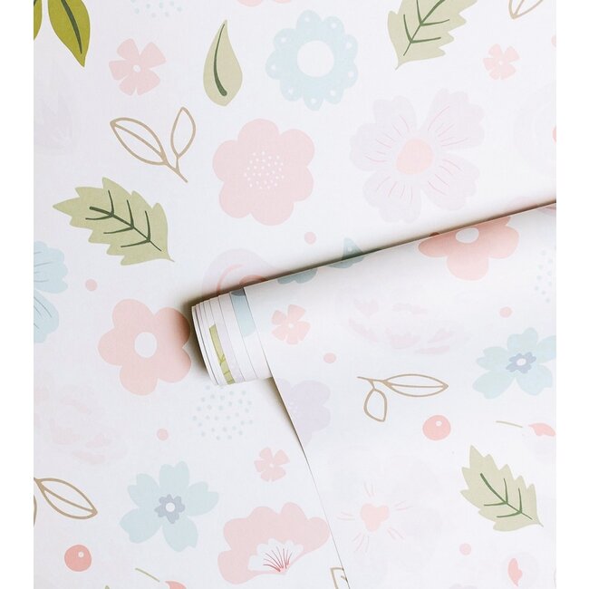 Dit bloemenbehang geeft een vrolijke uitstraling in de kinderkamer, en is met name prachtig voor een meidenkamer.